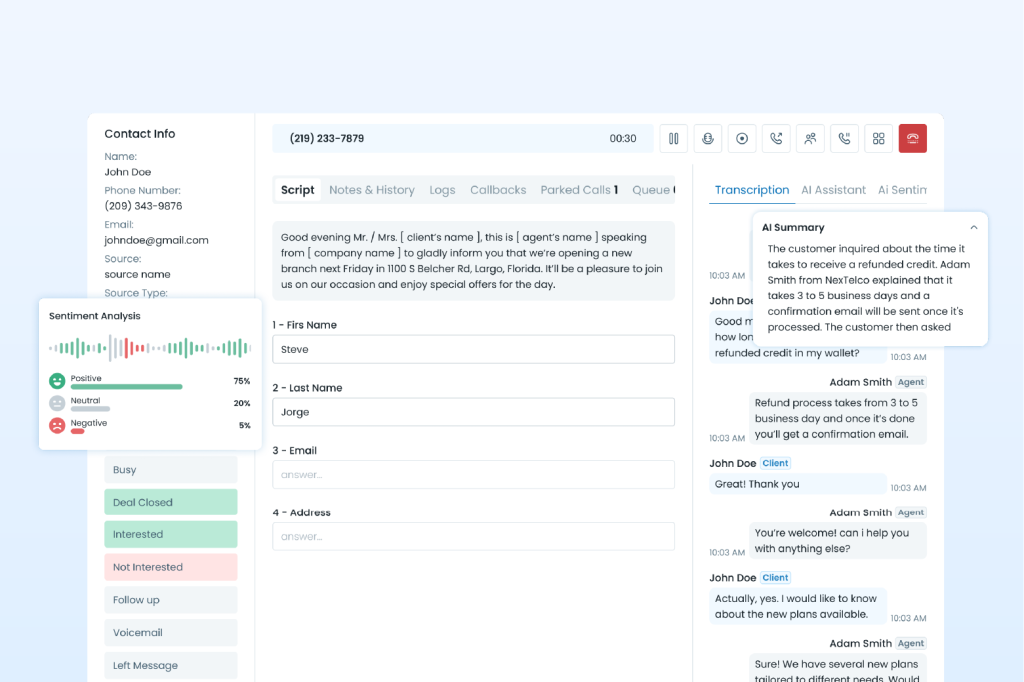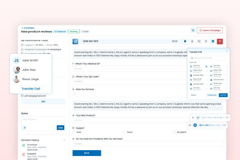 Access customer history, communication logs, and preferences directly from your CRM during calls.