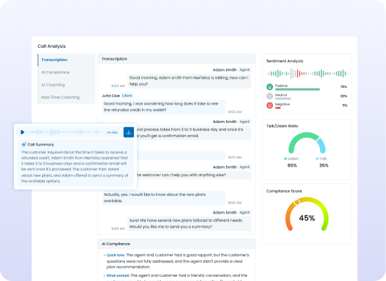 AI tools convert live and recorded calls into text and analyze sentiment, giving your team immediate insight into customer emotions. Understanding whether a customer is happy, frustrated, or confused helps agents respond more effectively and adjust their approach in real time.