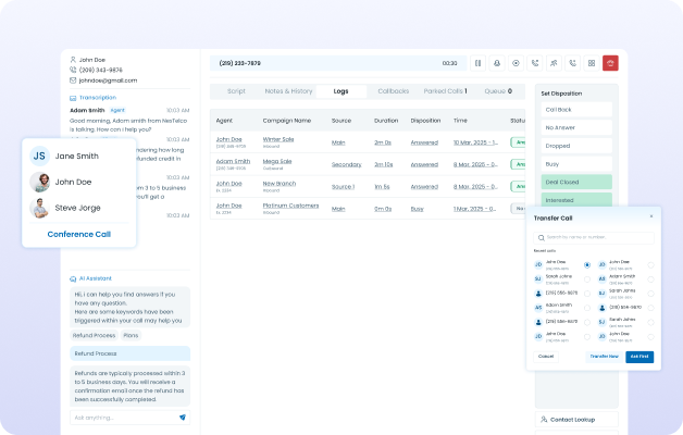NextelcoAI Cloud’s Campaign Execution module lets teams run outbound communications across voice, email, SMS, and voicemail from a unified interface. Personalize messaging, automate sequencing, and monitor engagement in real time to drive conversions and retention.