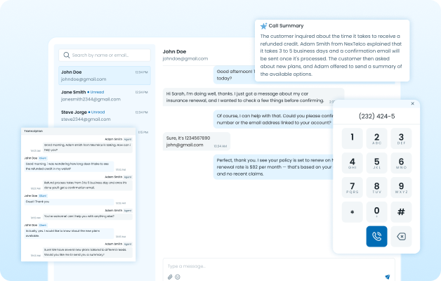 Transform the way you connect with customers, prospects, and teams. NexTelcoAI’s AI-powered, omnichannel communication platform helps you reduce costs, increase productivity, and deliver consistently exceptional experiences.