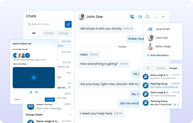 Team Chat in NextelcoAI WE (Workforce Engagement) keeps internal communication fast, secure, and contextual. Teams can collaborate instantly without switching tools, improving alignment across departments and remote teams.